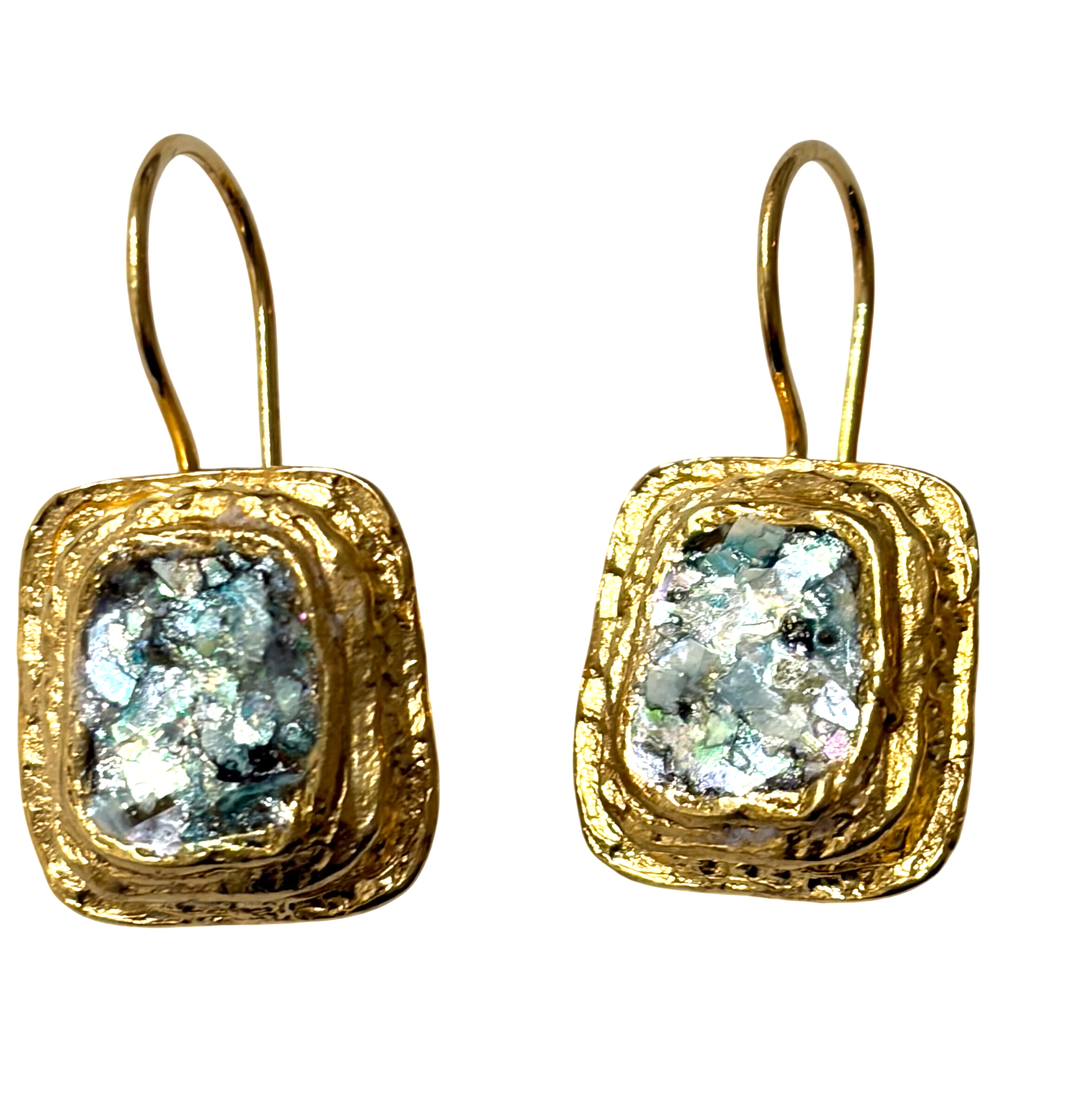 Add a touch of history and timeless beauty to your jewelry collection with these stunning Roman Glass Earrings, handcrafted in Israel. Each pair is made from authentic fragments of ancient Roman glass dating back over 2,000 years, discovered during archaeological excavations. No two pieces are exactly alike, making every pair truly one of a kind.